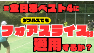 東海毎日3Rは6年連続全日本の左利き、弱点の少ない相手にリズムがつかめず2-6とセットを失うが、サービス、ボレーの攻め精度が上がり逆転勝ち。左利きはバックへのアプローチボレーが利きやすいが、フォアへのショートクロスアプローチと併用が良い