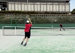 - 愛知オープン3Rは前週山口赤川杯決勝の相手。今回も接戦ながらも、攻めの姿勢を貫き、守りがしっかりしており、6-4、6-4の接戦勝利