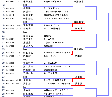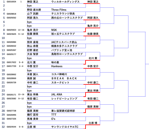- 今年最後のベテラン大会、ダンロップ京都Eグレードが13日から開幕。50才、60才、65才は64ドローとエントリー数も多く、レベルも高い
