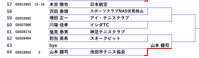 45才は16ドローのため4シードのみ。55才は珍しく上位ランカーのエントリーが少ないため、ランキング100位以上でも8シードに入っています