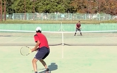 2ndセットのことも考え、相手ペースにはまらないように、一つ一つ返球。徐々に、ネットプレー、フォアハンドの対応ができ、タイブレークに突入