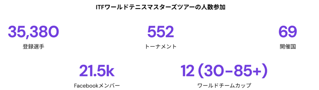 - ITFワールドテニスマスターズツアーのトーナメントは世界中で開催
