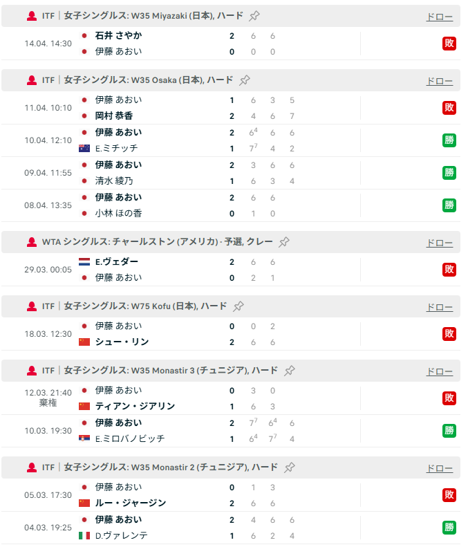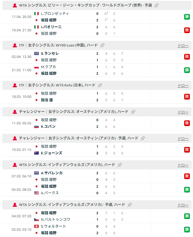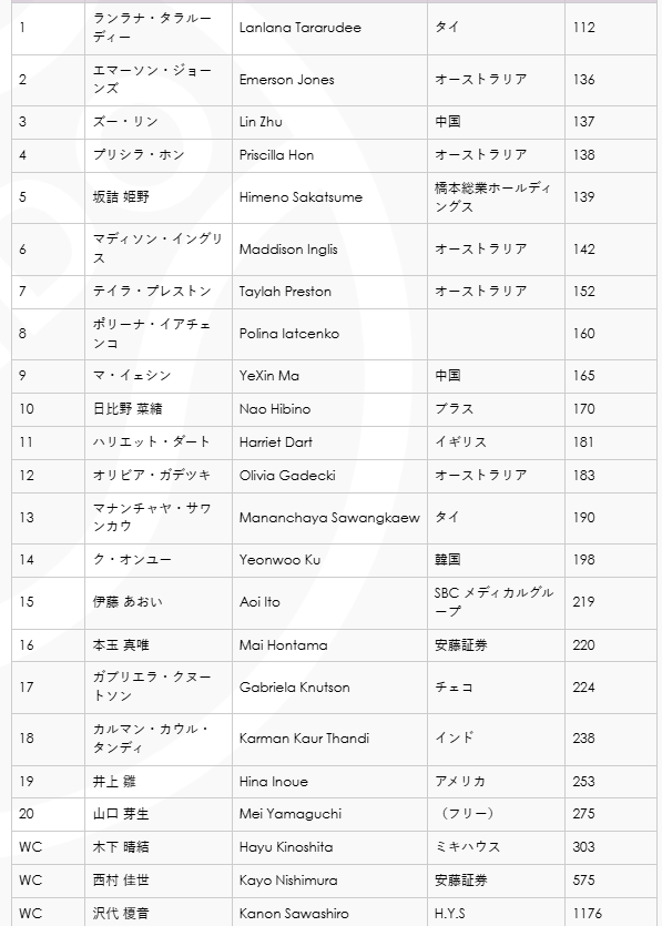 - 直後の岐阜カンガルーカップもW100で、この2大会がWTAポイントに影響