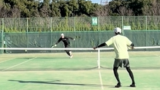 甘い浅い球を返してしまうと回り込みのフォアハンドを強く打たれ、エースにならなくても甘いバックの返球になってポイントを失います。このタイプの方はこれら強いストロークを左右に振り、エースととることでどんどん調子が上がっていき、他のショットの精度も上がっていくので注意が必要です。