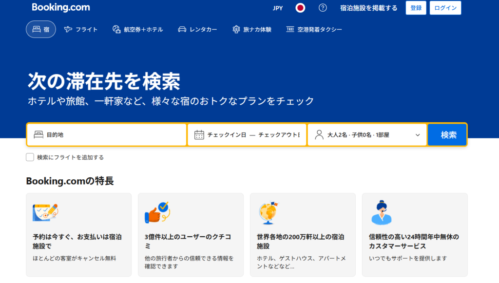Booking.comで大体の予約状況を確認し、今回初日のみ、ゲストハウスを予約
