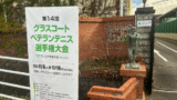 本日は前日の雨でしっかり濡れたオムニコートで練習しました。明日、関西ハードコートベテランのため少し早いコートでの練習にもなりました。